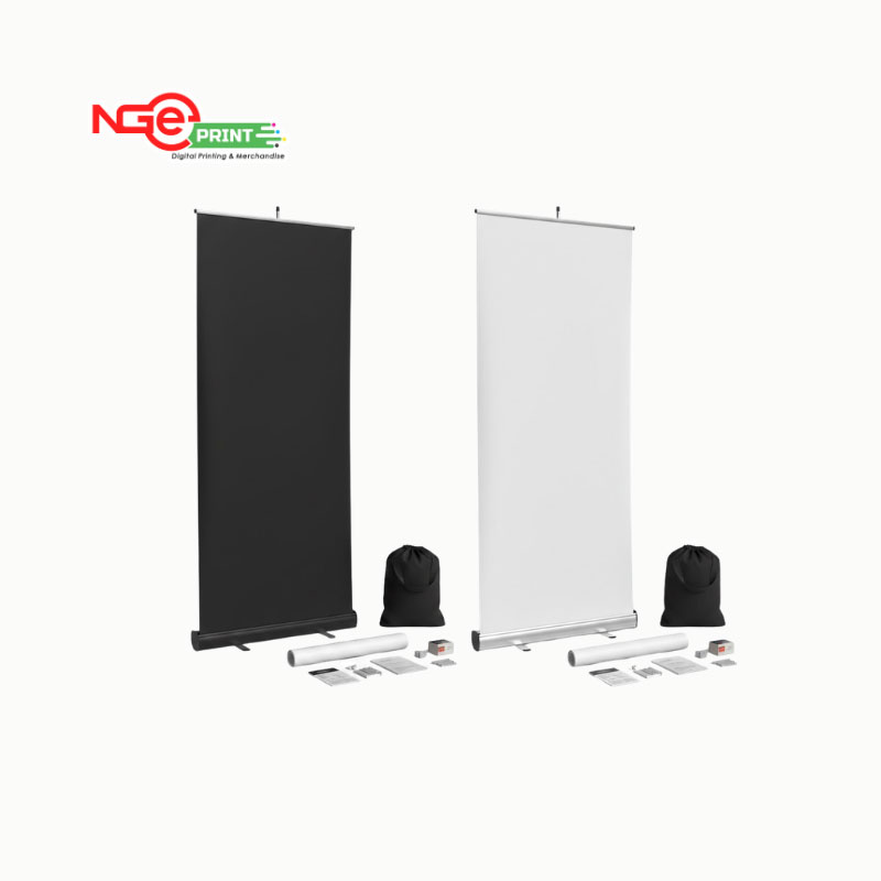 Secara visual, roll banner berdiri lebih profesional dibanding X banner biasa. Tampilan lebih clean, lebih eksklusif. Brand terlihat lebih serius.